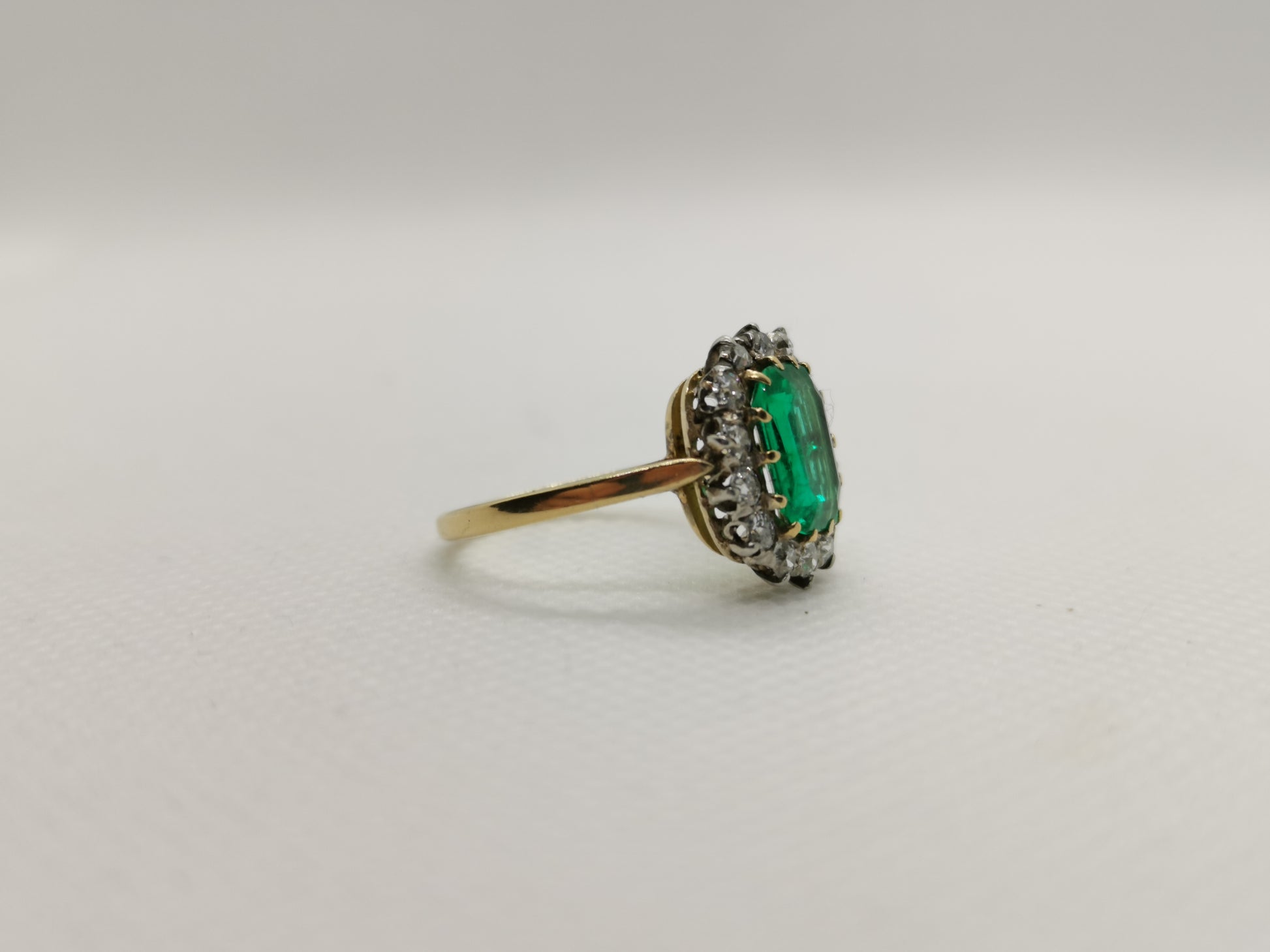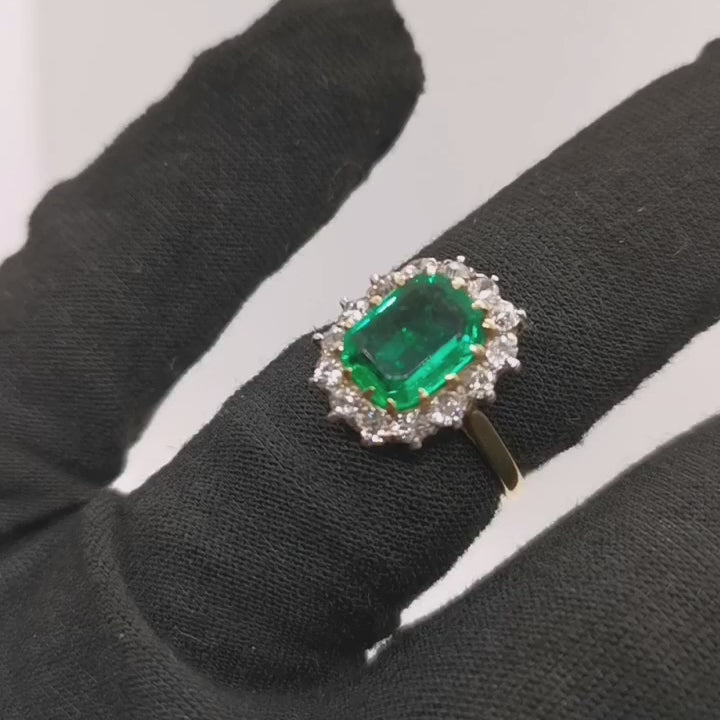 A true classic, this 18ct yellow gold ring combines the vibrant green of a natural emerald with the sparkle of fine diamonds. The bold colour of the emerald contrasts beautifully with the warmth of yellow gold, while the diamonds add timeless brilliance. Weighing 4.88g and crafted in solid 18ct gold, this pre-loved piece is XRF tested for purity and offers sophistication with a touch of vintage charm.