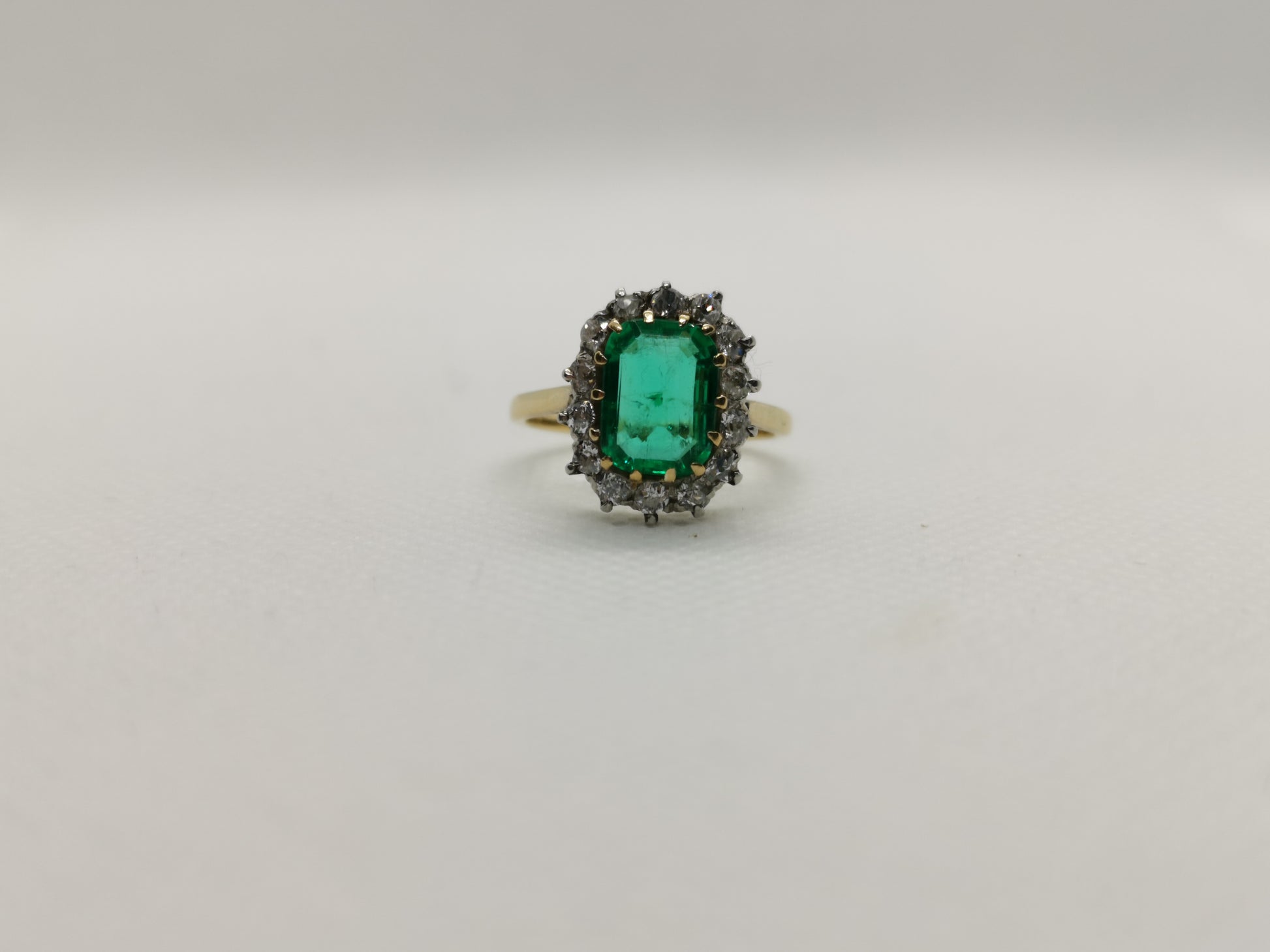 Elegant 18ct Yellow Gold Emerald & Diamond Ring – Size N½, 4.88g